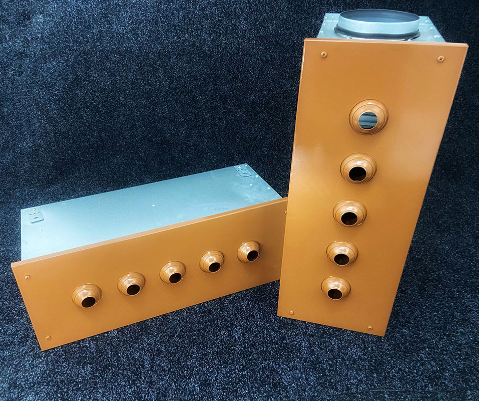 Воздухораспределители полностью изготавливаются из листовой оцинкованной стали. Изготовление сопел из стали позволяет использовать изделия при повышенном температурном режиме. Покраска осуществляется порошковым методом в цвета по международной шкале RAL, по умолчанию в белый цвет RAL 9016. В квадратных и прямоугольных воздухораспределителях окрашивается только лицевая панель, камера поставляется без покрытия. Круглые воздухораспределители окрашиваются полностью.
