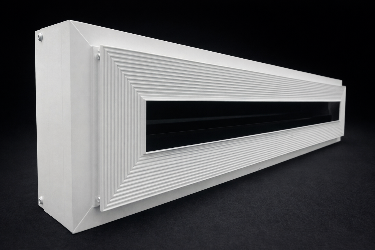 Линейный щелевой диффузор TL предназначен для скрытой установки в систему вентиляции и кондиционирования в качестве конечного декоративного элемента инженерной системы в жилых, торговых, и офисных помещениях. Диффузоры встраиваются в стены или потолок, изготавливаемые из гипсокартона и металлического каркаса.