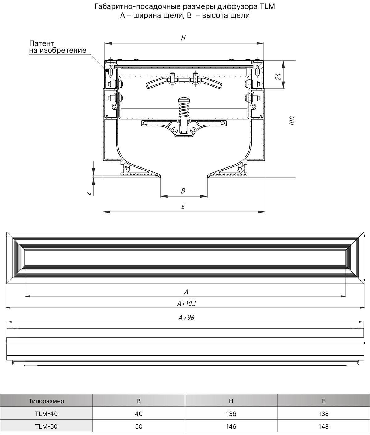 Конструкция вентиляционного щелевого диффузора обеспечивает эффективное распределение воздушных потоков с сохранением живого сечения диффузора и объема подаваемого воздуха при любом положении дефлектора.
